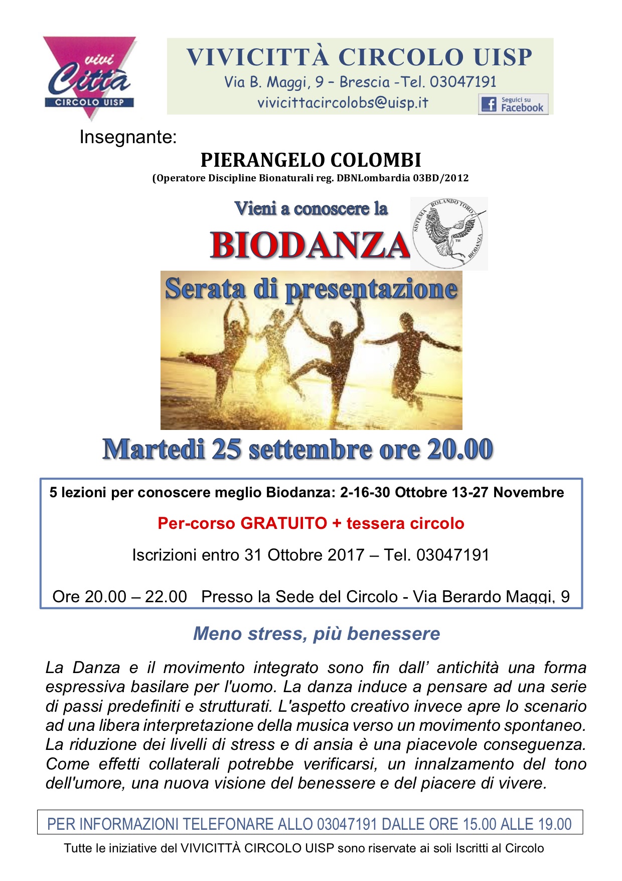 Cinque lezioni per conoscere meglio Biodanza, presso Circolo Vivicittà, Via Berardo Maggi 9, Brescia.