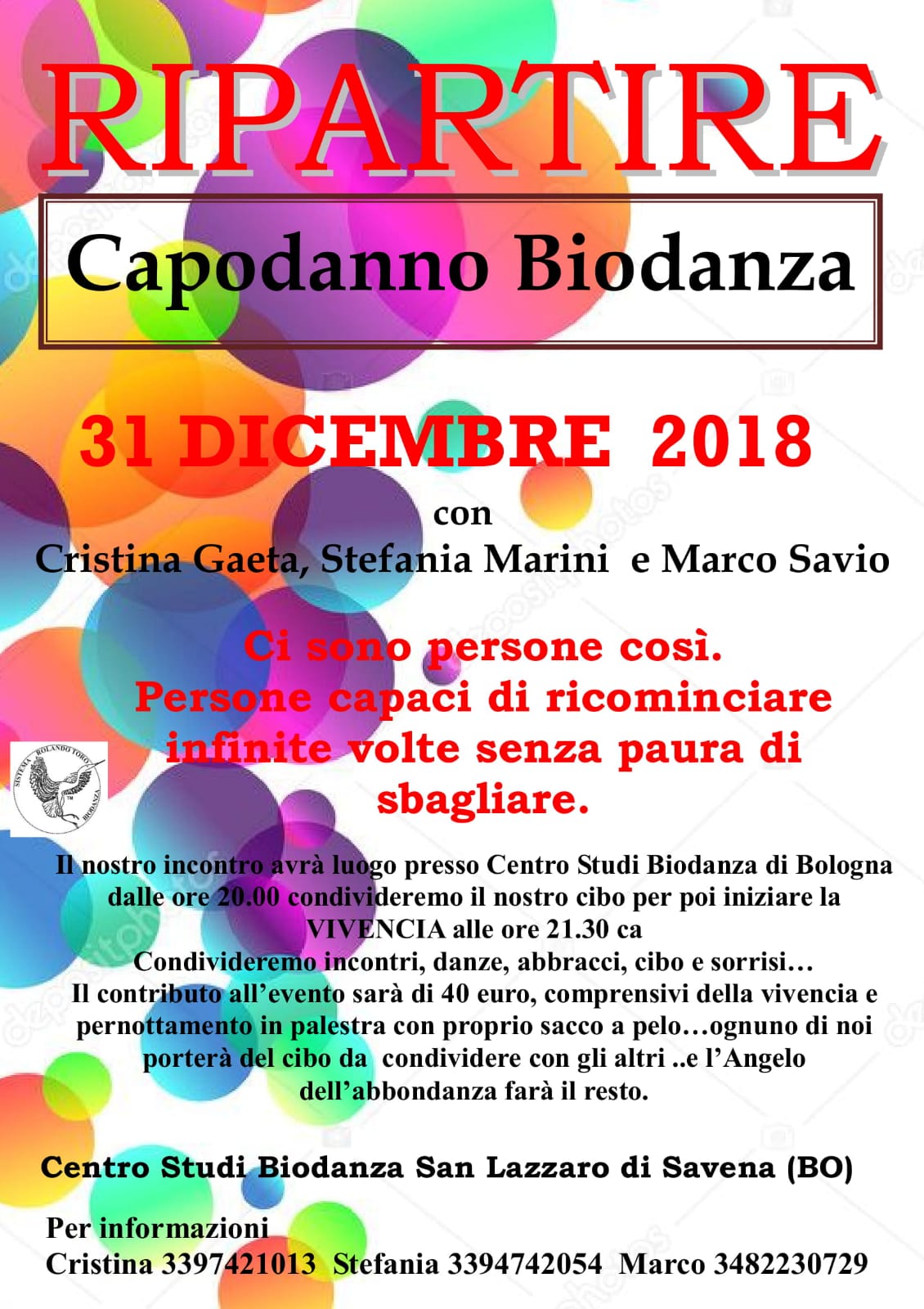 «Ripartire»: Capodanno con Biodanza a Bologna lunedì 31 Dicembre 2018 Incontri Stage San Lazzaro di Savena (BO) Map Per informazioni Stefania Marini • Info e contatti > Condividi questa pagina Share on Facebook Share Share on TwitterTweet Send email Mail Print Print